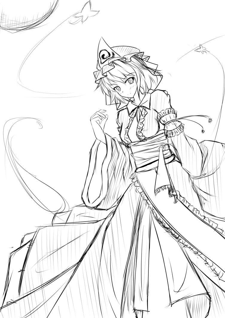 線画を起こしていたら、幽々子が妙に快活っぽい雰囲気を醸し出し始めました。